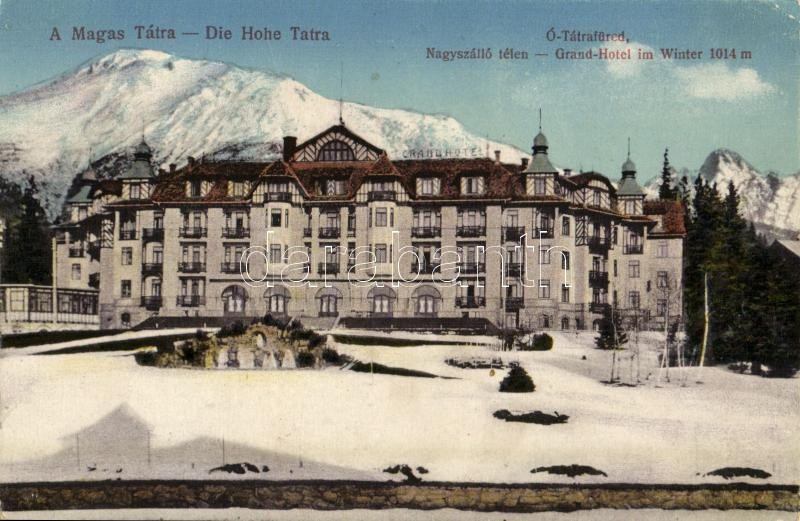 Leírás: Ótátrafüred, Altschmecks, Stary Smokovec (Tátra, Magas Tátra, Vysoké Tatry); Nagyszálló télen / Grand-Hotel im Winter / hotel in winter (Rb)