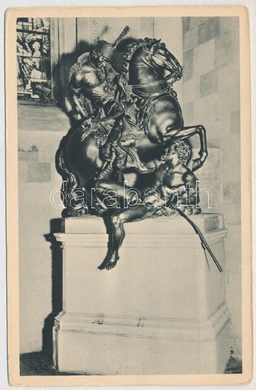 Pozsony, Pressburg, Bratislava; Dom Sv. Martin od J. R. Donnera / Szent Márton dóm (Koronázótemplom), főoltár, belső, Szent Márton és a koldus szobra (Georg Raphael Donner alkotása) / cathedral, main altar, interior, St. Martin and the Beggar monument (kopott sarkak / worn corners)