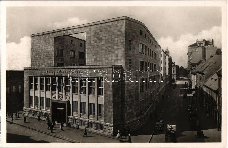 Pozsony, Pressburg, Bratislava; Slovenská Národná Banka / Szlovák Nemzeti Bank, automobil, kerékpár, Holic üzlete / Slovakian National Bank, automobiles, bicycle, shops
