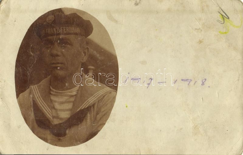 1918 Kotor, Cattaro; SMS Erzherzog Franz Ferdinand osztrák-magyar haditengerészet Radetzky-osztályú csatahajójának matróza / K.u.K. Kriegsmarine, SM Schlachtschiff / mariner of SMS Erzherzog Franz Ferdinand, Austro-Hungarian Navy ironclad warship. photo (EB)