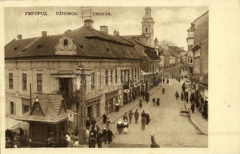 Leírás: Ungvár, Uzshorod, Uzhhorod, Uzhorod; utca, kioszk, üzletek, piac / street, kiosk, shops, market (Rb)