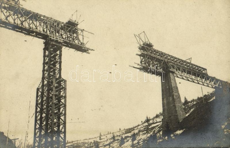 ~1916 A felrobbantott Karakó völgyhíd, viadukt a Gyimesi vasútvonalon, katonák / WWI Austro-Hungarian K.u.K. military, blown-up railway bridge, viaduct on the Ghimes railway line. photo