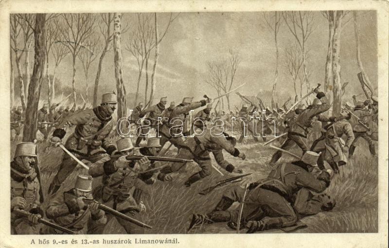 A hős 9-es és 13-as huszárok Limanowánál / K.u.K. (Austro-Hungarian) ... https://www.darabanth.com/hu/358-Gyorsarveres/358.0/Kepeslapok/Katonai~1000070/A-hos-9-es-es-13-as-huszarok-Limanowanal-KuK-Austro-Hungarian-military-art-postcard-hu~II2061055