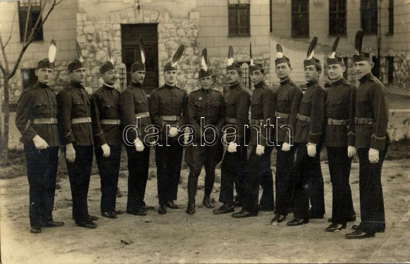 Leírás: Darutollas katonák a Horthy korszakból / Hungarian soldiers from the Horthy era, with crane feathers. photo (EK)