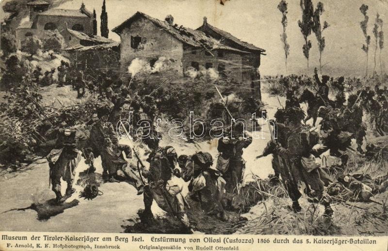 Erstürmung von Oliosi (Custozza) 1866 durch das 5. Kaiserjäger-Bataillon. Museum der Tiroler Kaiserjäger am Berg Isel / Tyrolean soldiers s: Rudolf Ottenfeld (small tears)