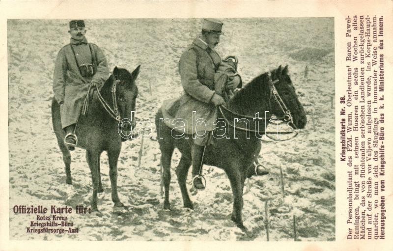 Kriegsbildkarte Nr. 36. Der Personaladjutant des FMZ. Wurm, Oberleutnant Baron Pawel-Ramingen. Kriegshilfsbüro des k.k. Ministeriums des Innern / WWI Austro-Hungarian (K.u.K.) military postcard
