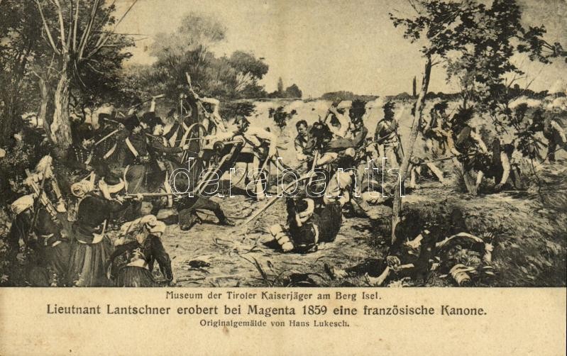 Lieutnant Lantscher erobert bei Magenta 1859 eine französische Kanone. Museum der Tiroler Kaiserjäger am Berg Isel / Tyrolean soldiers s: Hans Lukesch (EB)
