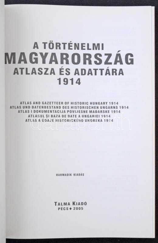 A Történelmi Magyarország Atlasza és Adattára 1914. Talma Kiadó, Pécs 2005. 246 old. Képeslapgyűjtőknek hasznos könyv! Kiváló minőségben / The Atlas and Data Library of the Historical Hungary 1914. 246 p. - Helpful book for postcard collectors! Excellent condition