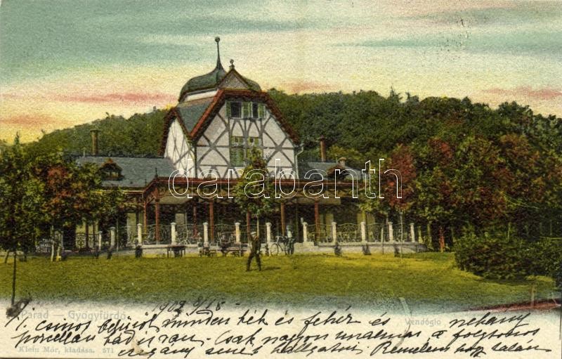Leírás: 1902 Parádfürdő, Parád, Parád-gyógyfürdő; Vendéglő, étterem, kerékpár. Kiadja Klein Mór 571.