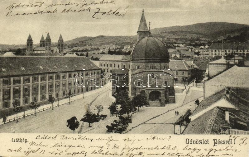 Leírás: 1905 Pécs, látkép, Dzsámi, templom (EK)