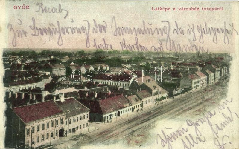 Leírás: 1908 Győr, látkép a városháza tornyáról, Fehér Hajó szálloda