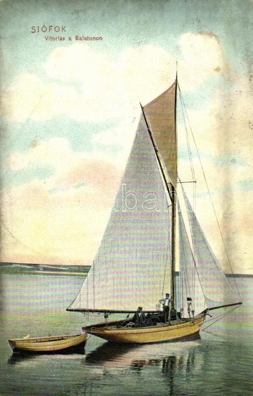 1909 Siófok, Vitorlás a Balatonon https://www.darabanth.com/hu/358-Gyorsarveres/358.0/Kepeslapok/Magyarorszag~1000004/1909-Siofok-Vitorlas-a-Balatonon~II2058575