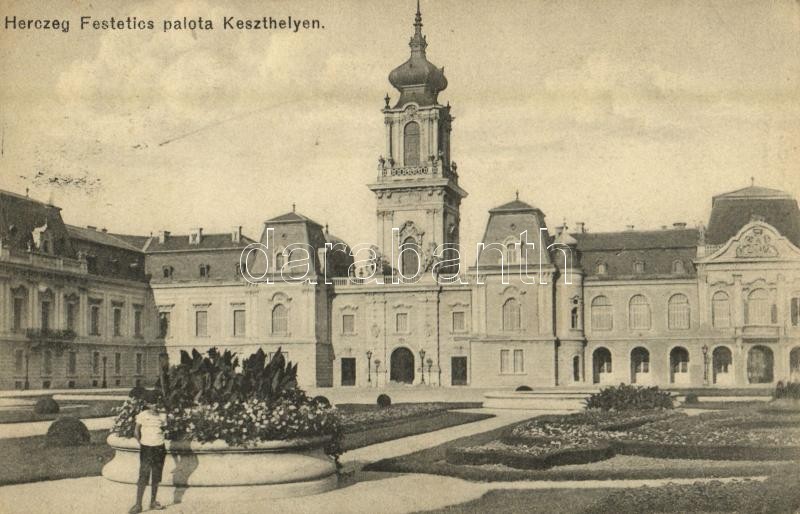 1915 Keszthely, Herceg Festetics palota, kastély. Kiadja Mérei Ignác https://www.darabanth.com/hu/358-Gyorsarveres/358.0/Kepeslapok/Magyarorszag~1000004/1915-Keszthely-Herceg-Festetics-palota-kastely-Kiadja-Merei-Ignac~II2055475