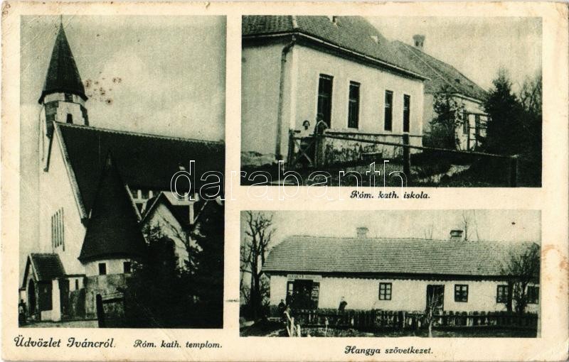 1926 Ivánc, Római katolikus templom és iskola, Hangya Szövetkezet üzle... https://www.darabanth.com/hu/358-Gyorsarveres/358.0/Kepeslapok/Magyarorszag~1000004/1926-Ivanc-Romai-katolikus-templom-es-iskola-Hangya-Szovetkezet-uzlete-Steegmuller-fenyird~II1988967