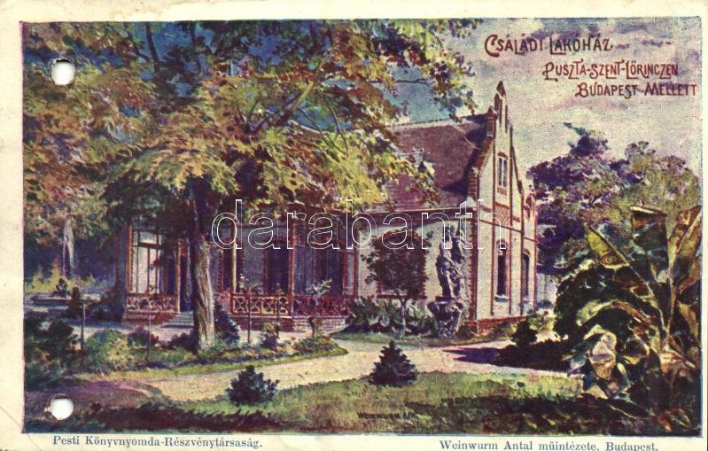 1932 Budapest XVIII. Pestszentlőrinc, Pusztaszentlőrinc, Szentlőrinc; Családi lakóház. Pesti Könyvnyomda-Részvénytársaság, Weinwurm Antal kiadása (lyukasztott / punched holes)
