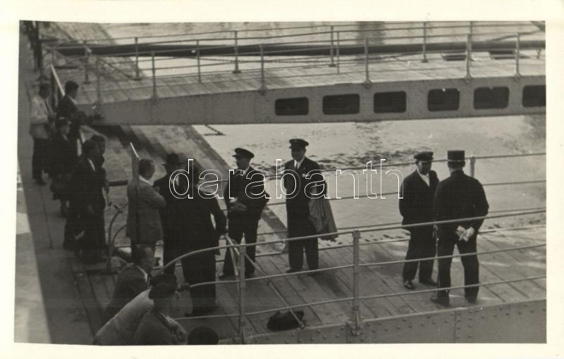 Leírás: 1938 Esztergom, hajókirándulás, kapitányok a kikötőben. photo