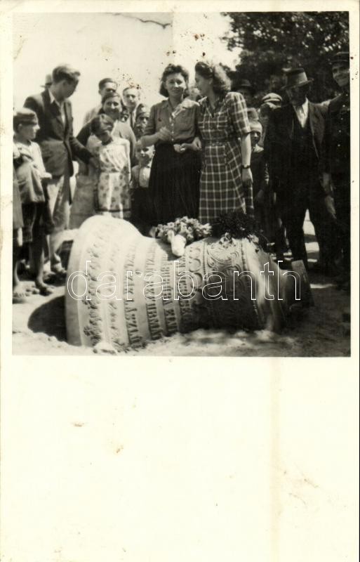 1944 Hajdúszoboszló, Szlezák László által 1923-ban öntött nagyharangot a német hadvezetés hadianyagként lefoglalta július 20-án. A toronyból kidobott nagyharang a földbe fúródott. photo (fa)