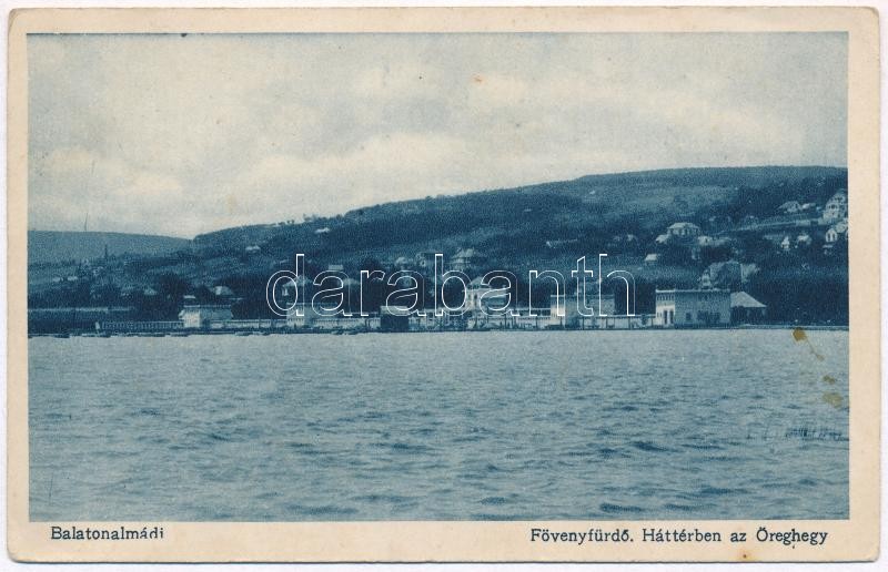 Balatonalmádi, Fövenyfürdő, háttérben az Öreghegy (ázott / wet damage) https://www.darabanth.com/hu/358-Gyorsarveres/358.0/Kepeslapok/Magyarorszag~1000004/Balatonalmadi-Fovenyfurdo-hatterben-az-Oreghegy-azott-wet-damage~II1962780