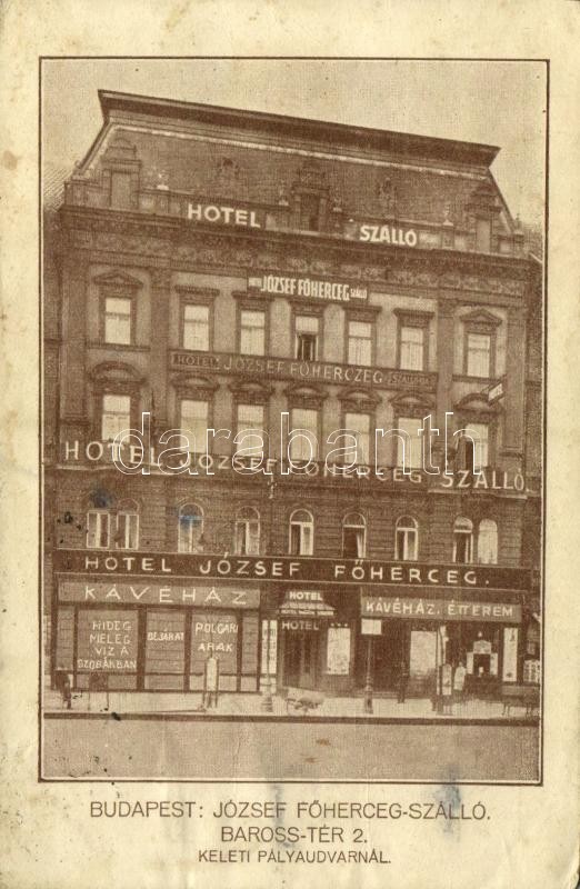Budapest VIII. József főherceg szálló, kávéház és étterem. Baross tér ... https://www.darabanth.com/hu/358-Gyorsarveres/358.0/Kepeslapok/Magyarorszag~1000004/Budapest-VIII-Jozsef-foherceg-szallo-kavehaz-es-etterem-Baross-ter-2-fa~II2060345