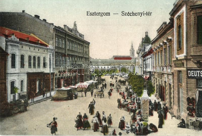Esztergom, Széchenyi tér, piac, Takarékpénztár, Deutsch üzlete https://www.darabanth.com/hu/358-Gyorsarveres/358.0/Kepeslapok/Magyarorszag~1000004/Esztergom-Szechenyi-ter-piac-Takarekpenztar-Deutsch-uzlete~II1610632