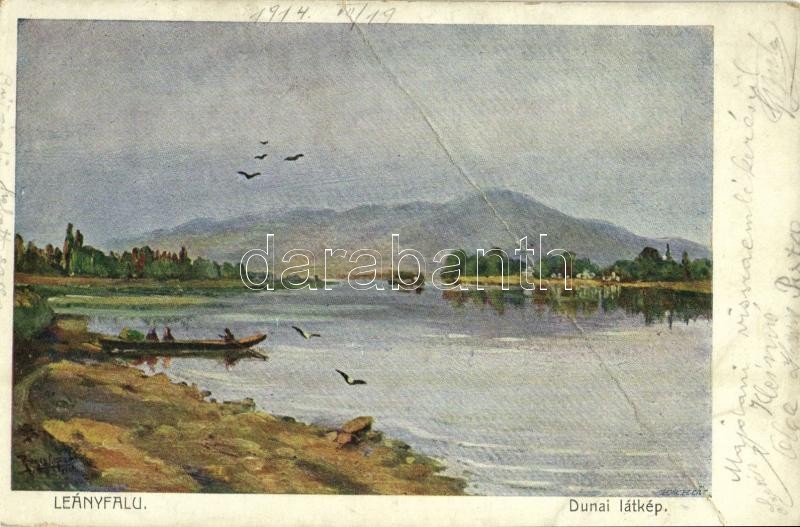 Leírás: Leányfalu, Dunai látkép. H.G. Művészkártyák s: Rieger Győző (fa)