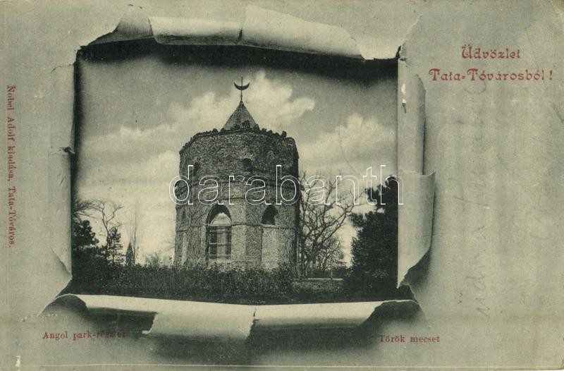 Leírás: Tata, Tata-Tóváros; Angol park, Török mecset. Kiadja Nobel Adolf (EK)