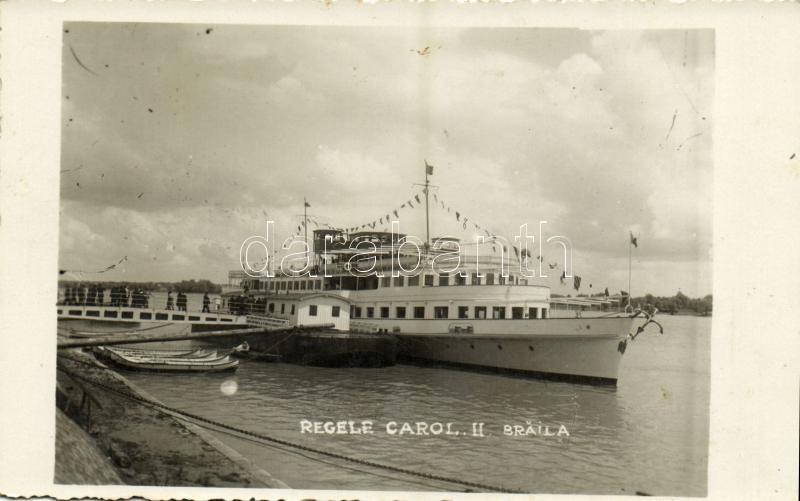 1938 Braila, Regele Carol II / passenger steamship. photo https://www.darabanth.com/hu/358-Gyorsarveres/358.0/Kepeslapok/Romania~1000045/1938-Braila-Regele-Carol-II-passenger-steamship-photo~II2060399