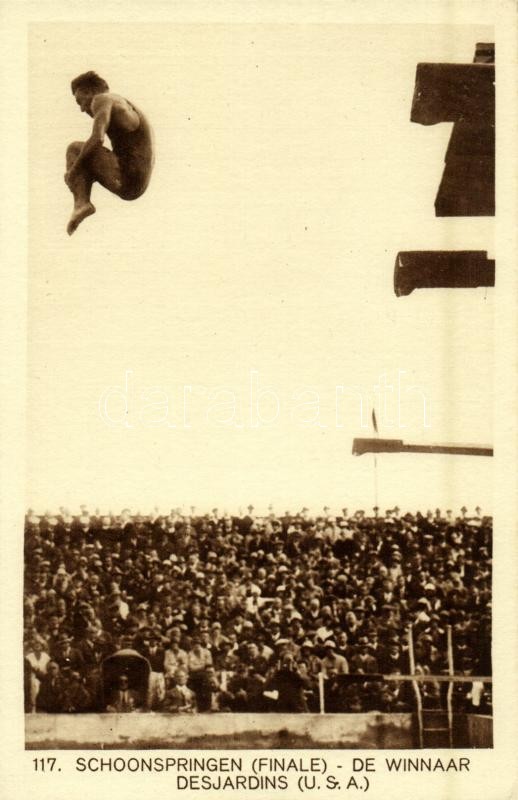 1928 Amsterdam, Olympische Spelen. Schoonspringen (Finale), De winnar Desjardins (USA) / 1928 Summer Olympics. diving finals, the winner Desjardins from the US