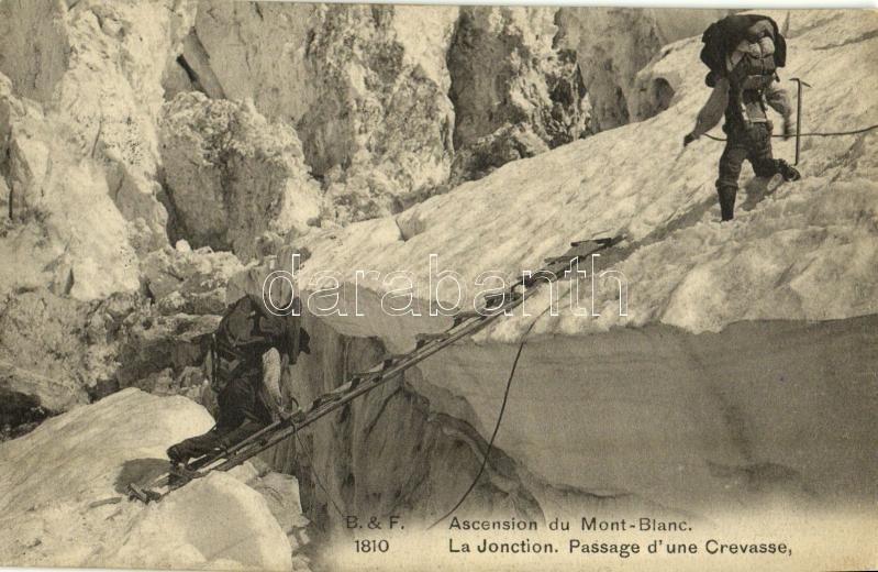 Leírás: Ascension du Mont Blanc, La Junction Passage d'une Crevasse / winter sport, mountain climbers