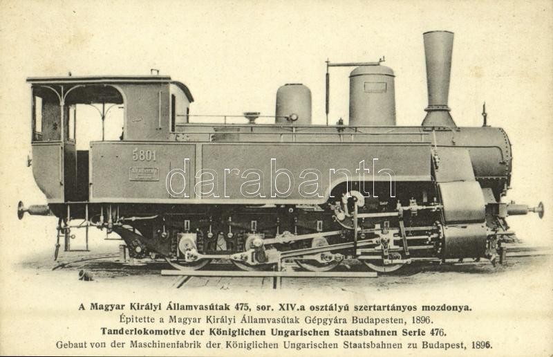 Magyar Királyi Államvasutak (MÁV) 475. sor. XIV.a. osztályú szertartán... https://www.darabanth.com/hu/358-Gyorsarveres/358.0/Kepeslapok/Vonat~1000087/Magyar-Kiralyi-Allamvasutak-MAV-475-sor-XIVa-osztalyu-szertartanyos-mozdonya-Gozmozdon~II2059512