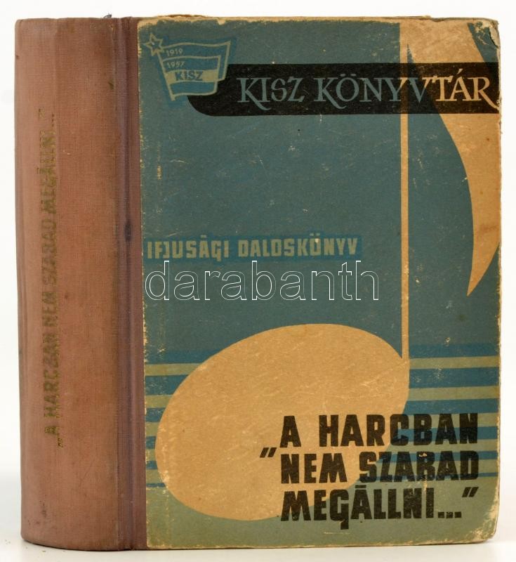 "A harcban nem szabad megállni..." (KISZ Daloskönyv.) Bp.,19... https://www.darabanth.com/hu/358-Gyorsarveres/358.0/Konyvek/Konyvek-Egyeb-ritkasagok~500056/A-harcban-nem-szabad-megallni-KISZ-Daloskonyv-Bp-1959-Orszagos-Ifjusagi-SportbizottsC3~II2057250