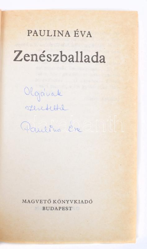 Paulina Éva: Zenészballada. Dedikált! Bp., 1986. Magvető Kiadói papírk... https://www.darabanth.com/hu/358-Gyorsarveres/358.0/Konyvek/Konyvek-Epiteszet-muveszet~500045/Paulina-Eva-Zeneszballada-Dedikalt-Bp-1986-Magveto-Kiadoi-papirkotes~II2059817