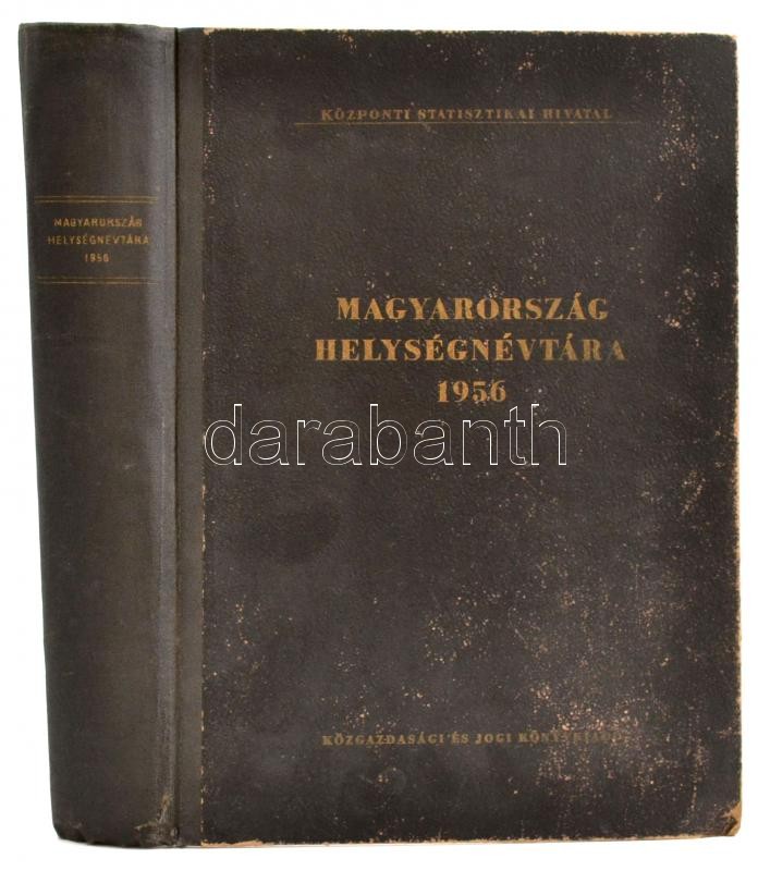 1956 Magyarország helységnévtára. Központi Statisztikai Hivatal. Bp., 1956, Közgazdasági és Jogi Könyvkiadó. Kiadói kissé kopottas félvászon kötés, intézményi bélyegzővel, belül jó állapotban.