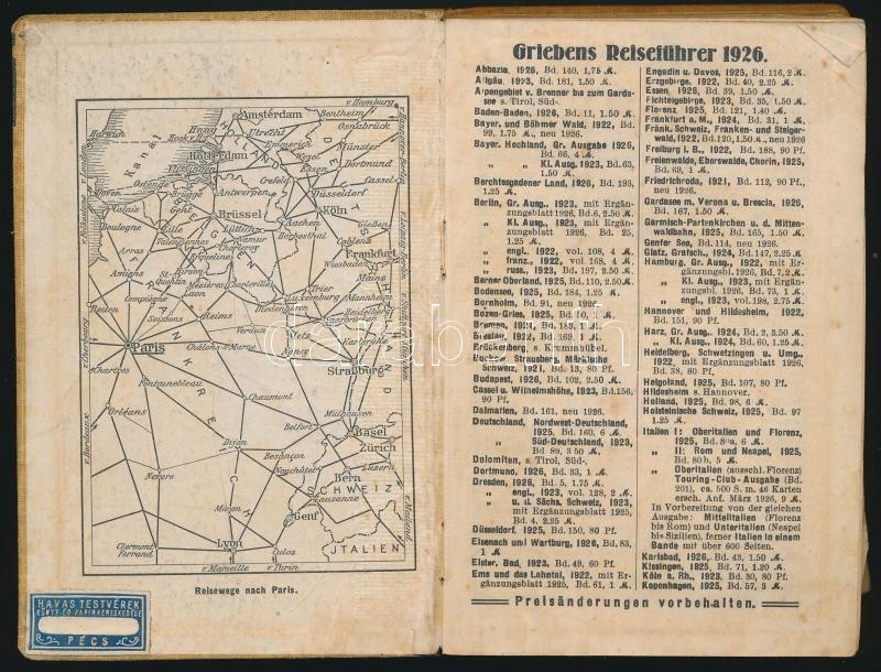 Paris und Umgebung. Griebens Reiseführer 21. Berlin, 1926, Grieben. 15. kiadás. Térképekkel illusztrált. Német nyelven. Kiadói egészvászon-kötés, kissé kopott borítóval, a hátsó kihajtható térkép szakadt.