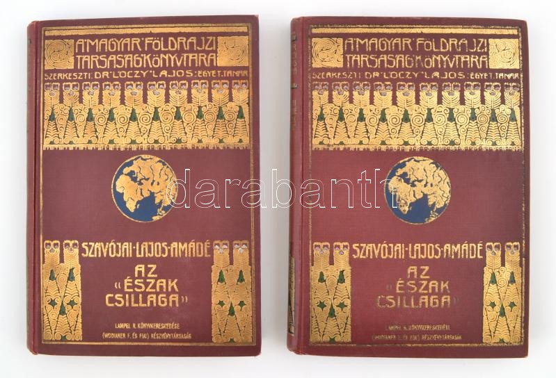 Szavójai Lajos Amádé: Az "Észak csillaga". Az Északi sarkitengeren 1899-1900. I-III. kötet. Fordította: Dr. Darvai Móric. Magyar Földrajzi Társaság Könyvtára. Bp.,é.n., Lampel R. (Wodianer F. és Fiai. Rt.) Fekete-fehér fotókkal, térképekkel illusztrálva. Kiadói dúsan aranyozott egészvászon sorozatkötésben, kisebb kopásnyomokkal a gerincen és a borítón.