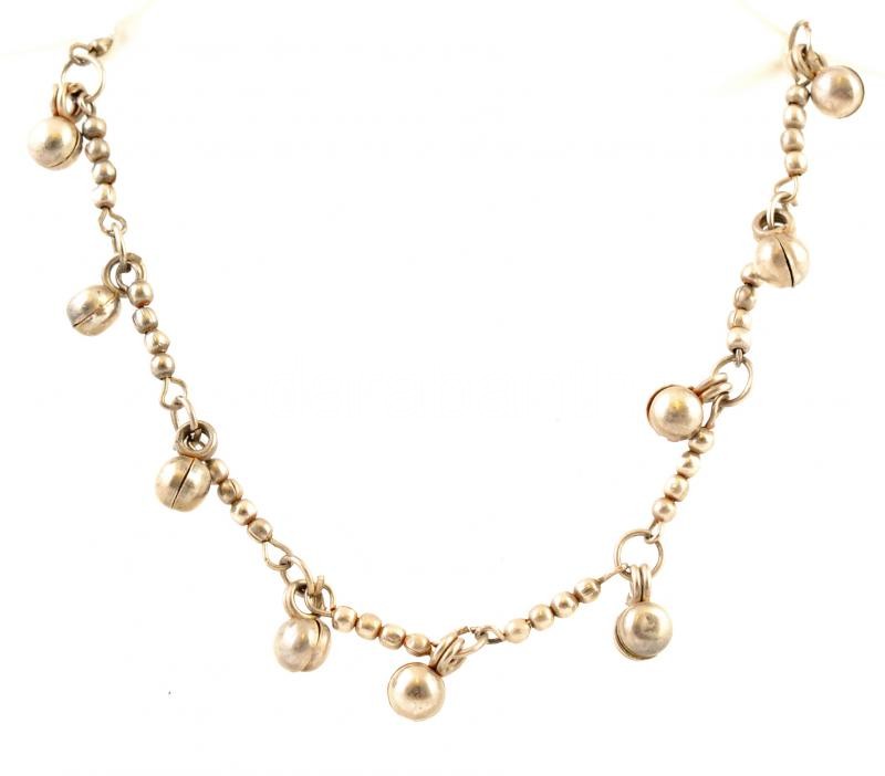 Leírás: Ezüstszínű bokalánc csörgőkkel, h: 18-22 cm