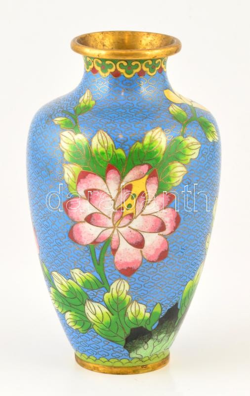 Leírás: Réz váza rekeszzománc díszítéssel 21 cm