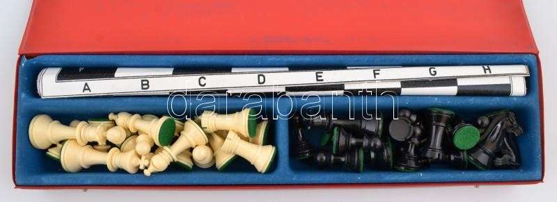 Leírás: Versenysakk készlet, vászon tábla, műanyag figurák, eredeti dobozában, 44×44 cm