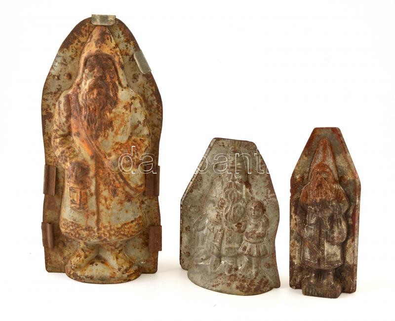 Leírás: cca 1930 fém mézeskalács Mikulás formák (3 db), rozsdás, horpadt, m:20-32 cm