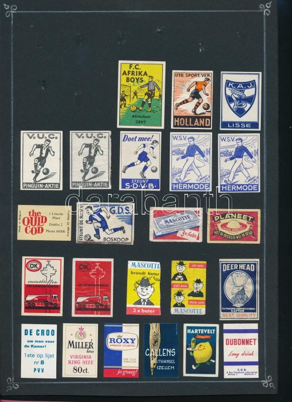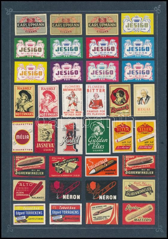 Leírás: 59 db kisméretű belga gyufacímke 2 papírlapon