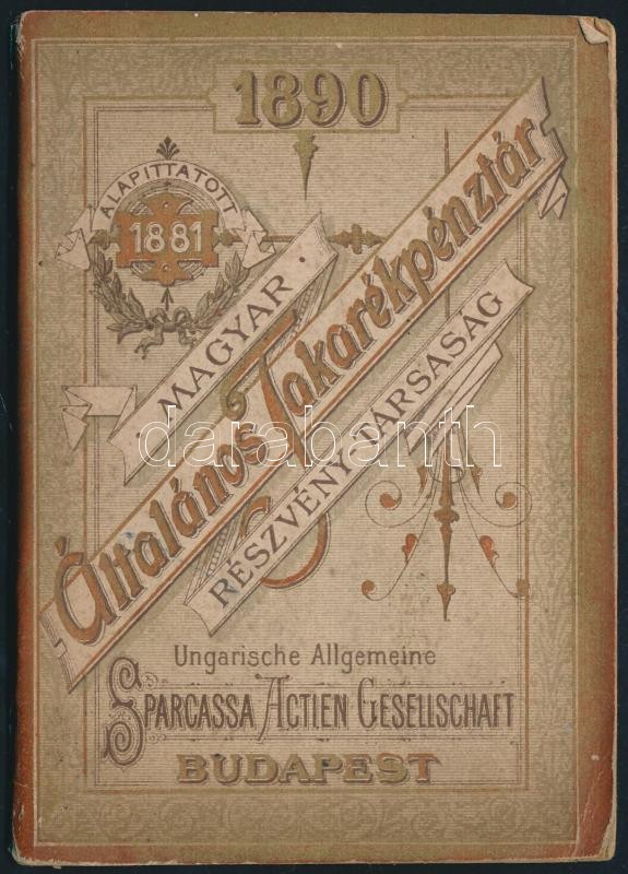Leírás: 1890 Általános Takarékpénztár zsebnaptár 36p. Litho címlappal 13 cm