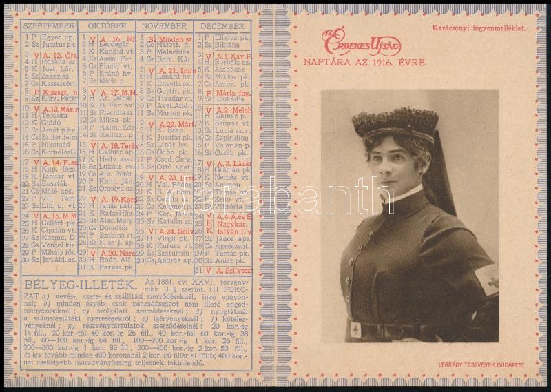 Leírás: 1916 Az Érdekes Újság kártyanaptára, címlapján Auguszta főhercegnő képével