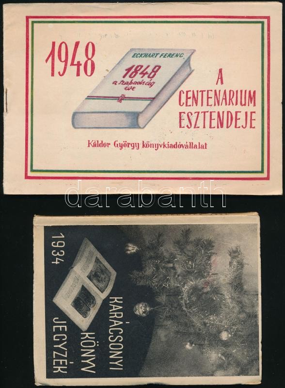 Leírás: 1934-1948 Vegyes könyves prospektus tétel, 4 db: Singer és Wolfner Karácsonyi Könyvjegyzék (1934), Szent István-Társulat könyvei (1941), Turul karácsonyi könyvei (1943), Káldor György Könyvkiadóvállalat (1948.)