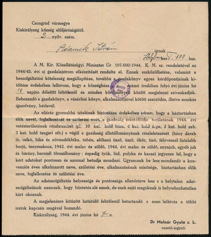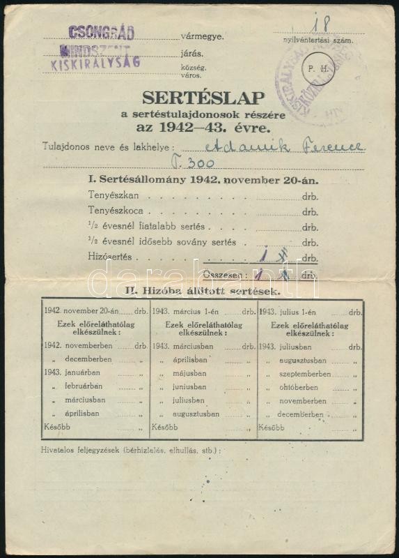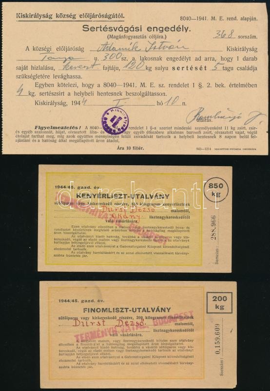 1942-1944 Kiskirályság, Sertésvágási engedély, sertéslap, fizetési meg... https://www.darabanth.com/hu/358-Gyorsarveres/358.0/Mutargy-papirregiseg-egyeb/Okmanyok~500019/1942-1944-Kiskiralysag-Sertesvagasi-engedely-serteslap-fizetesi-meghagyas-stb-8-db~II2057338