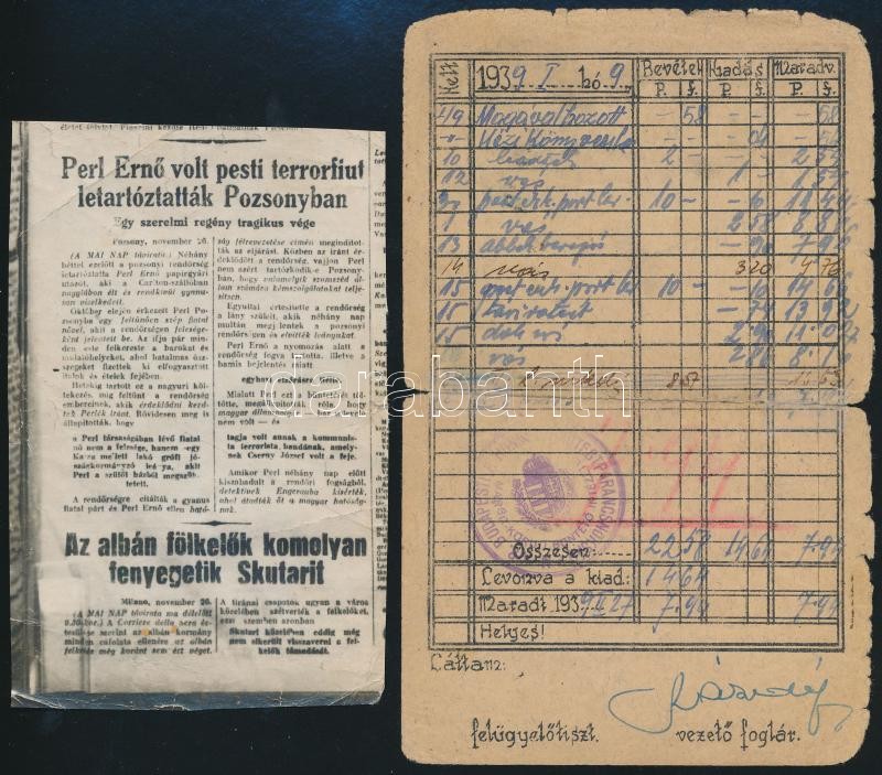 cca 1920-1930 Perl Ernő kommunista papírjai, közte újságcikk, stb. https://www.darabanth.com/hu/358-Gyorsarveres/358.0/Mutargy-papirregiseg-egyeb/Okmanyok~500019/cca-1920-1930-Perl-Erno-kommunista-papirjai-kozte-ujsagcikk-stb~II2058152