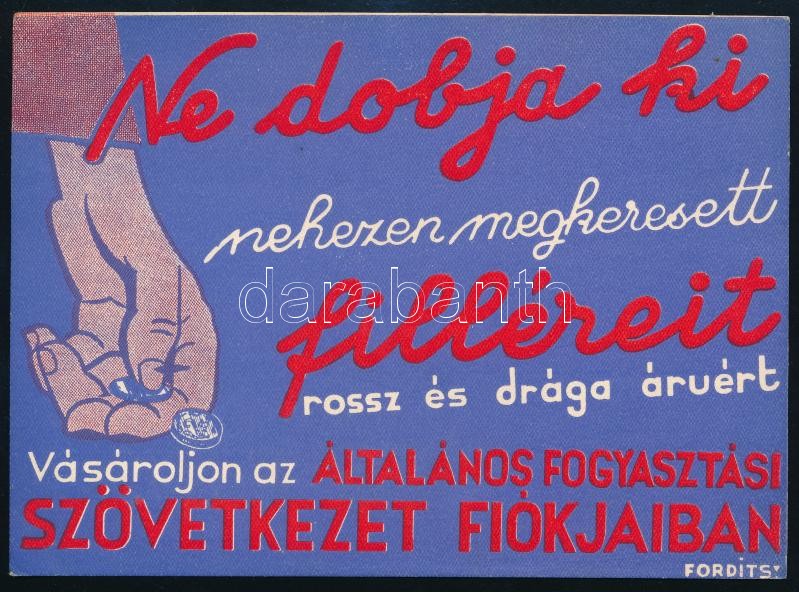1930 Az Általános Fogyasztási Szövetkezet reklámlapja hátoldalán a főv... https://www.darabanth.com/hu/358-Gyorsarveres/358.0/Mutargy-papirregiseg-egyeb/Reklam~500023/1930-Az-Altalanos-Fogyasztasi-Szovetkezet-reklamlapja-hatoldalan-a-fovarosi-fiokhalozatt~II2058601