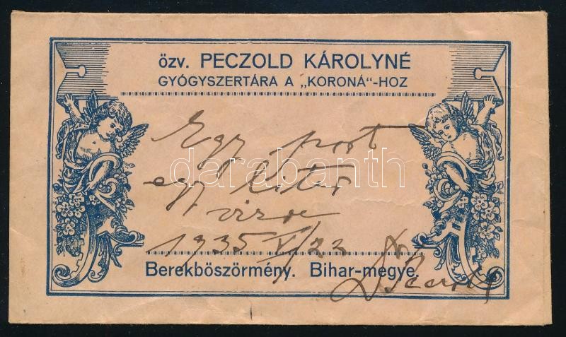 özv. Peczold Károlyné gyógyszertára a Koronához receptboríték https://www.darabanth.com/hu/358-Gyorsarveres/358.0/Mutargy-papirregiseg-egyeb/Reklam~500023/ozv-Peczold-Karolyne-gyogyszertara-a-Koronahoz-receptboritek~II2059351