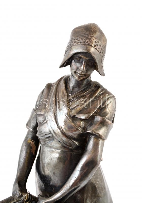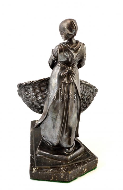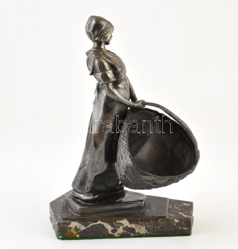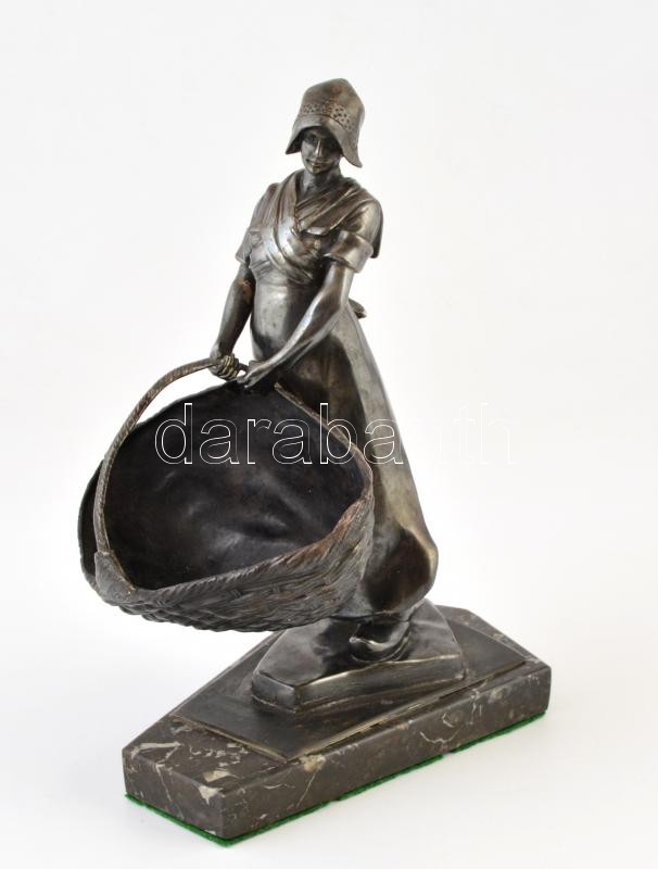 Leírás: Jelzés nélkül: Tulipános lány kosárral. Ón, márvány talapzaton, m:23,5 cm