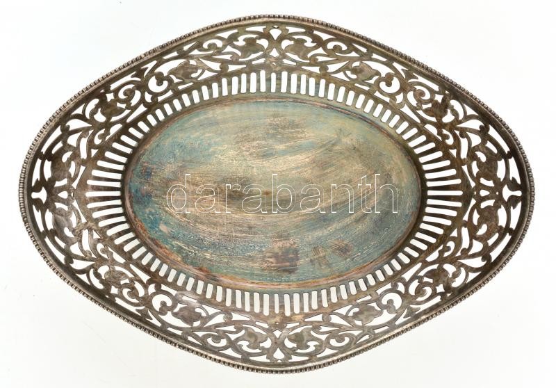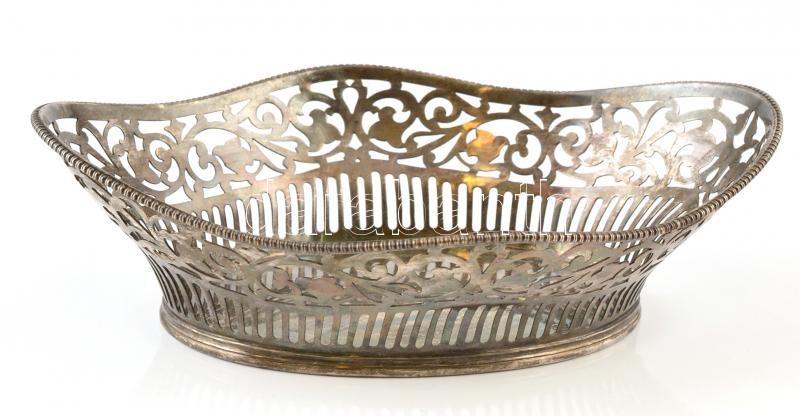 Leírás: Ezüst áttört szélű kosárka, jelzett, 20,5×14,5 cm, nettó: 221 g