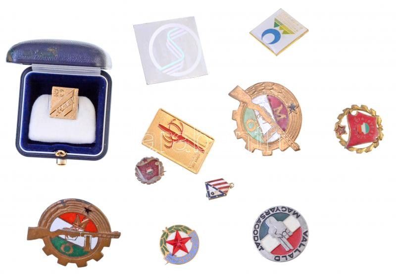 Leírás: 11db-os jelvény és munkásőr jelvény tétel, közte "Szocialista Brigád", "Vállald magyarságodat" T:1,2